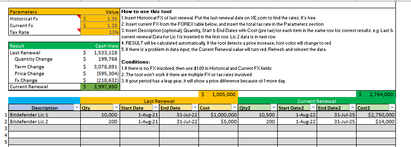 Technology Contracts and commercials are not easy to understand and decifer. What seems like a good deal sometimes has hidden price increases. Whether you are a math wizard or are scared of number crunching, the Renewal Cost analyzer will save you time, effort and most importantly MONEY!! Spend your time, where it matters the most.